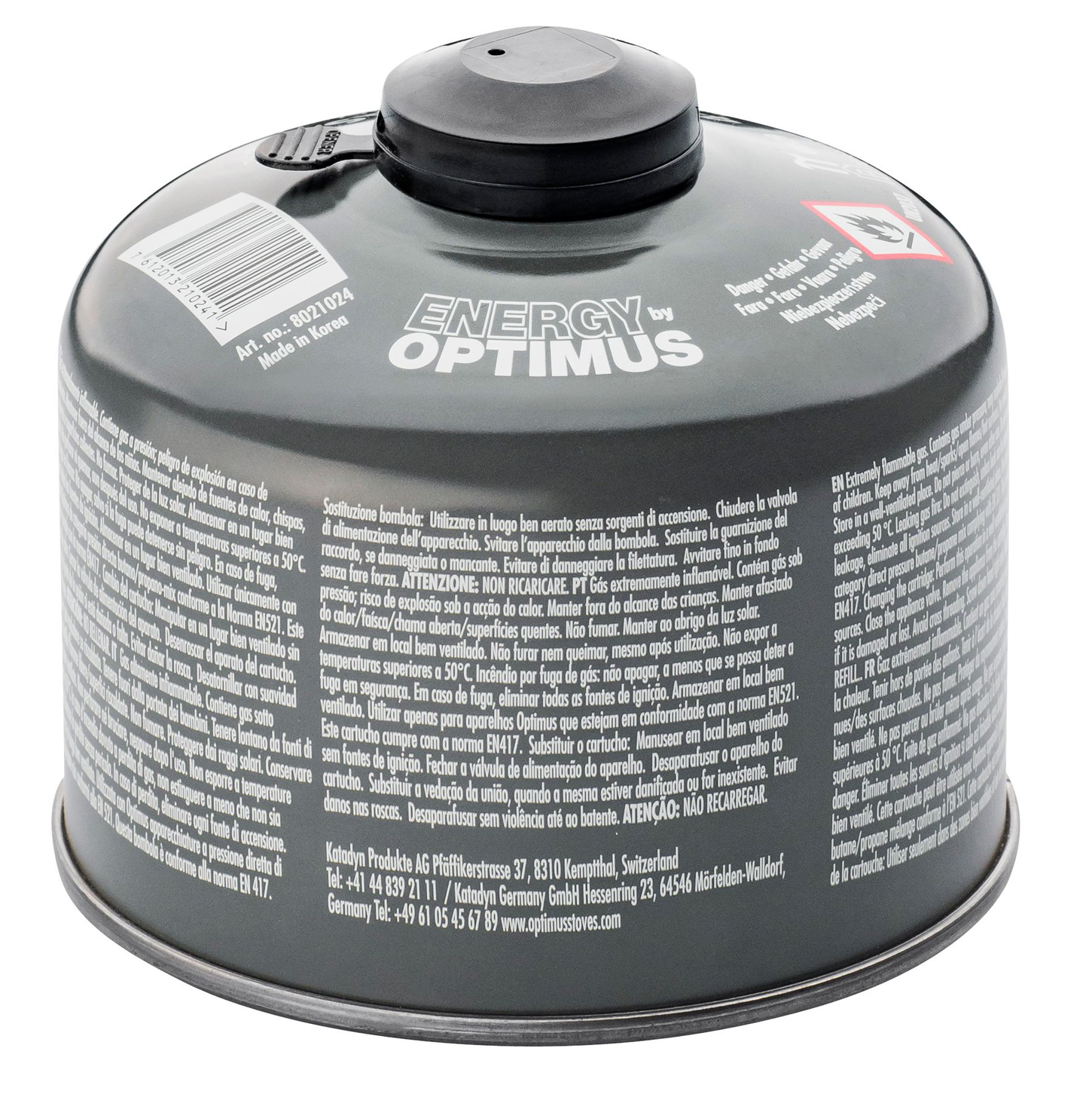 Das neue 4-Season Gas von Optimus - zuverlässig bei jeder Jahreszeit. Das neue 4-Season Gas von Optimus hält Outdoor-Kocher bei jeder Jahreszeit in Betrieb. Der hochwertige Gas-Mix besteht aus Propan, Butan und einer erhöhten Menge an Isobutan, welches einen besonders niedrigen Siedepunkt hat. Dadurch stellt das 4-Season Gas auch bei Temperaturen um den Gefrierpunkt die stabile Leistung sicher, um Outdoor-Kocher bei jeder Jahreszeit sowie bei Hochtouren zuverlässig zu betreiben. Die dunkelgraue Farbe der Kartusche wirkt bei Sonneneinstrahlung wärmend auf das Gas und dient bei Nacht zur besseren Tarnung. Die Verschlusskappe schützt den Inhalt und lässt erkennen, ob die Kartusche bereits verwendet wurde oder neu ist. Inhalt: 70% Isobutan, 25% Propan, 5% Butan