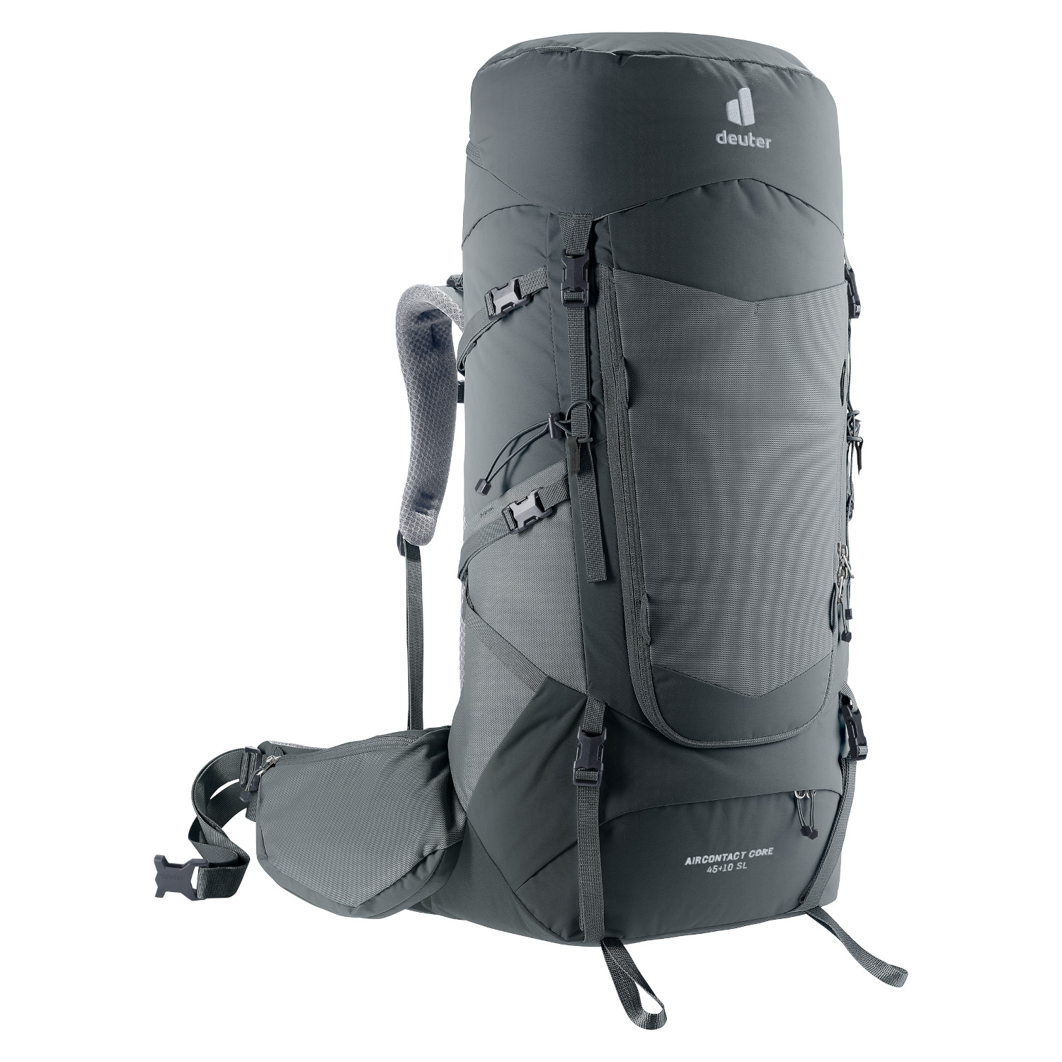 Der Rucksack lässt sich dank des neuen VariClickSystems mit fünf Stufen individuell an die Rückenlänge anpassen. Der leicht bedienbare Mechanismus gibt durch ein spürbares Klick-FeedbackSicherheit beim Einrasten, während die zentralePlatzierung für eine gerade Ausrichtung sorgt.Die neuartigen ActiveBalance-Schulterträgerpassen sich durch das bewegliche Schulterträgerherz dynamisch der Körperbewegung an und gewährleisten zusammen mit dem VariFlex-Systemein ausbalanciertes Tragegefühl sowie eine zentrierte Position des Rucksacks. Die ECL-Hüftflossenverteilen das Gewicht gleichmäßig auf die Hüfte.Der teilweise freiliegende Aluminium-Y-Rahmensorgt für Stabilität und ermöglicht in Kombinationmit dem atmungsaktiven Air-Spacer-Mesh desAircontact-Rückensystems maximale Luftzirkulation. Die durchgehende Polsterung an Hüftflossenund Schulterträgern reduziert Druckstellen underhöht den Tragekomfort.