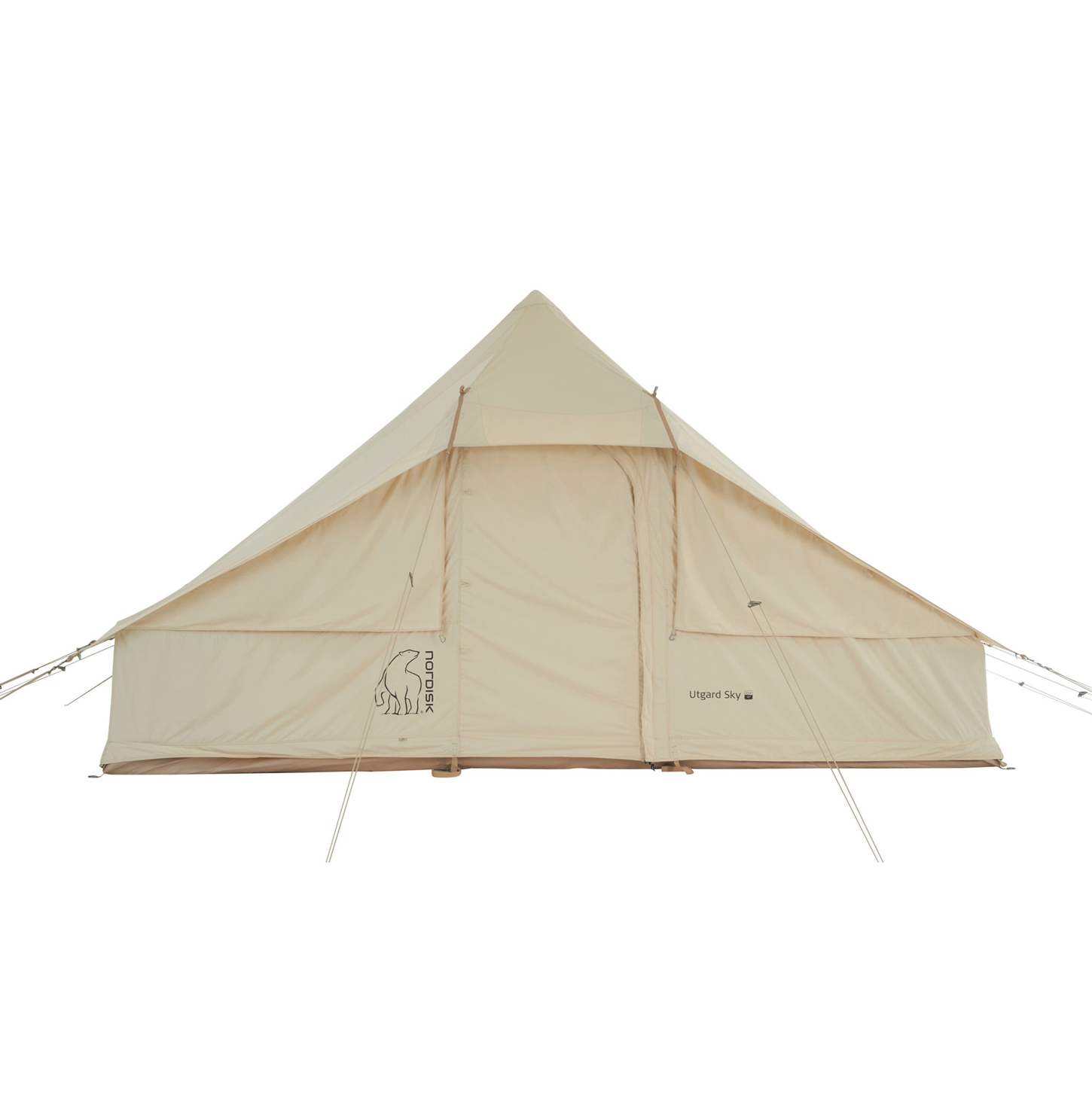 Mit der neuen 180º Nordisk SKY Öffnung erlebst du das klassische Nordisk Baumwollzelt von einer ganz neuen Seite. Indem du einfach den Boden vom Außenzelt abzippst und die Ecken abspannst, kannst du ein ganz neues Camping-Erlebnis schaffen. Die ausziehbaren Mittel- und Eckstangen sind bereits im Lieferumfang enthalten, so dass du die integrierte Tarplösung zu 100 % nutzen kannst.